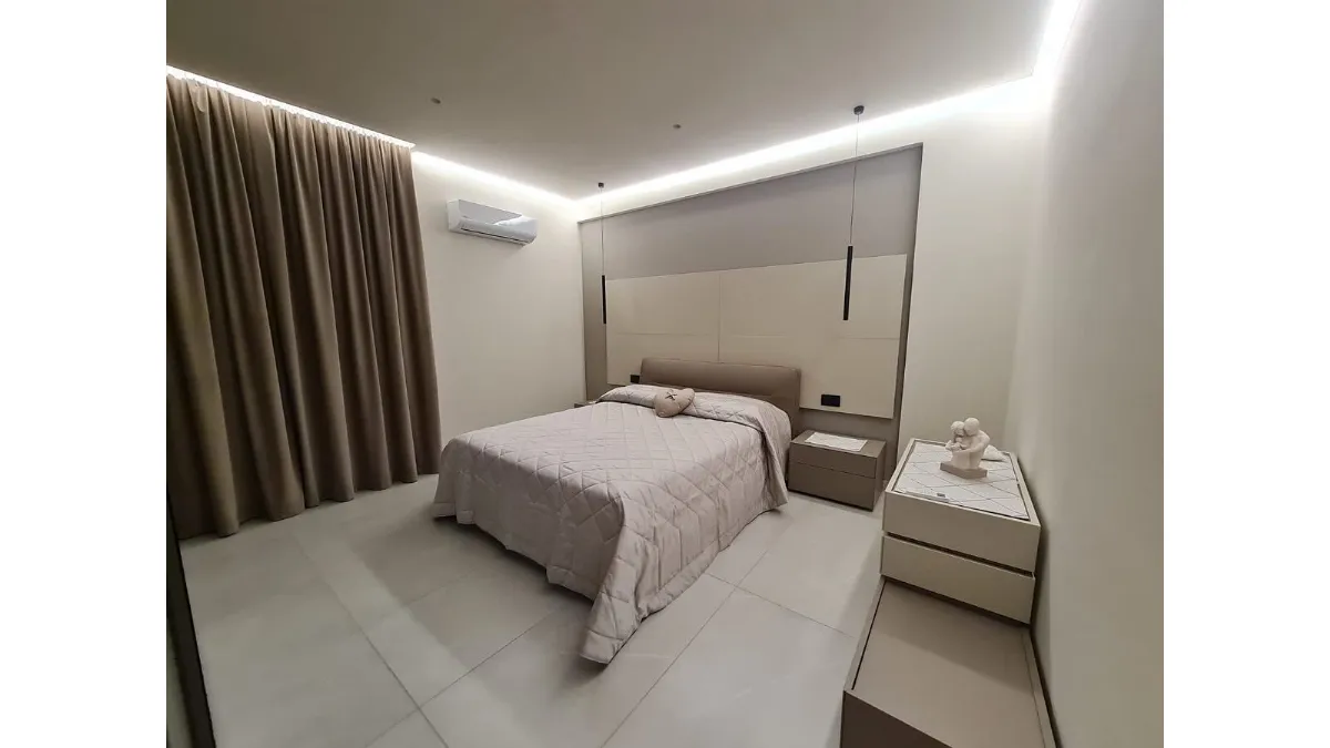 Qui balza subito all’occhio l’armadio Sangiacomo italia che prevede uno specchio centrale e maniglie a profilo verticale in alluminio verniciato ; camera da letto nella quale ruba la scena il letto SanGiacomo modello GASTON