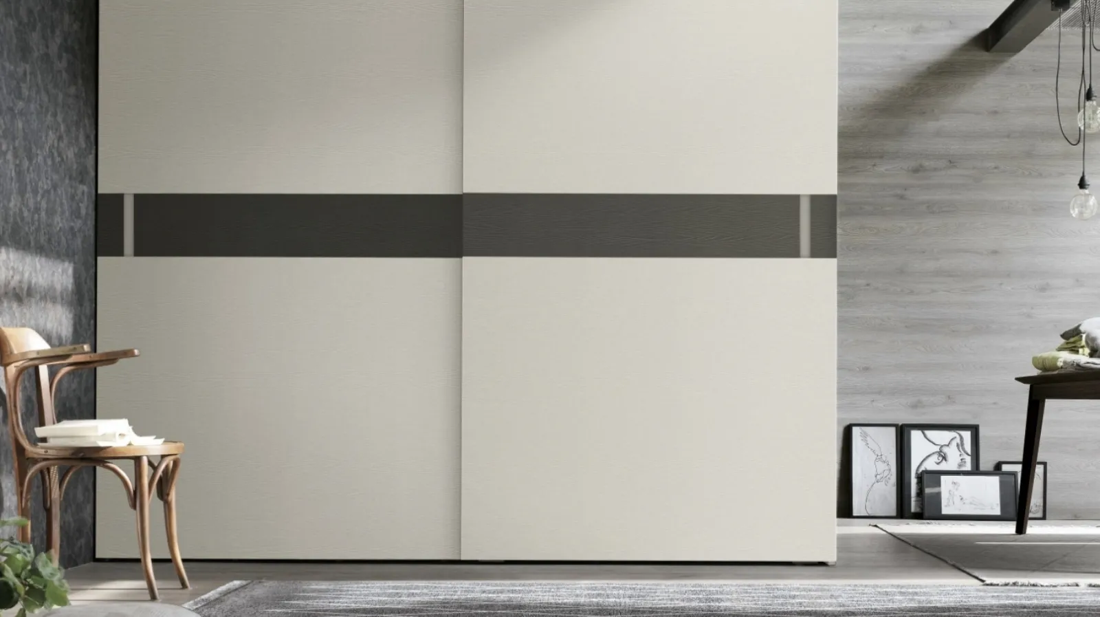 Armadio moderno in materico con pannello centrale in laccato opaco
