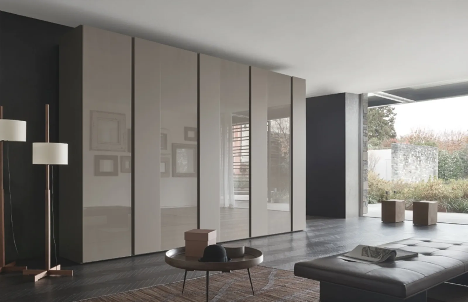 Modello Breccia SP 35 con ante scorrevoli in laccato lucido pensato per una zona notte dai richiami moderni: scopri le soluzioni a muro