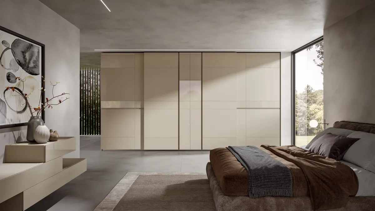 Modello Gral con ante scorrevoli in laccato opaco ideale per una camera da letto dai richiami moderni: scopri le soluzioni a muro