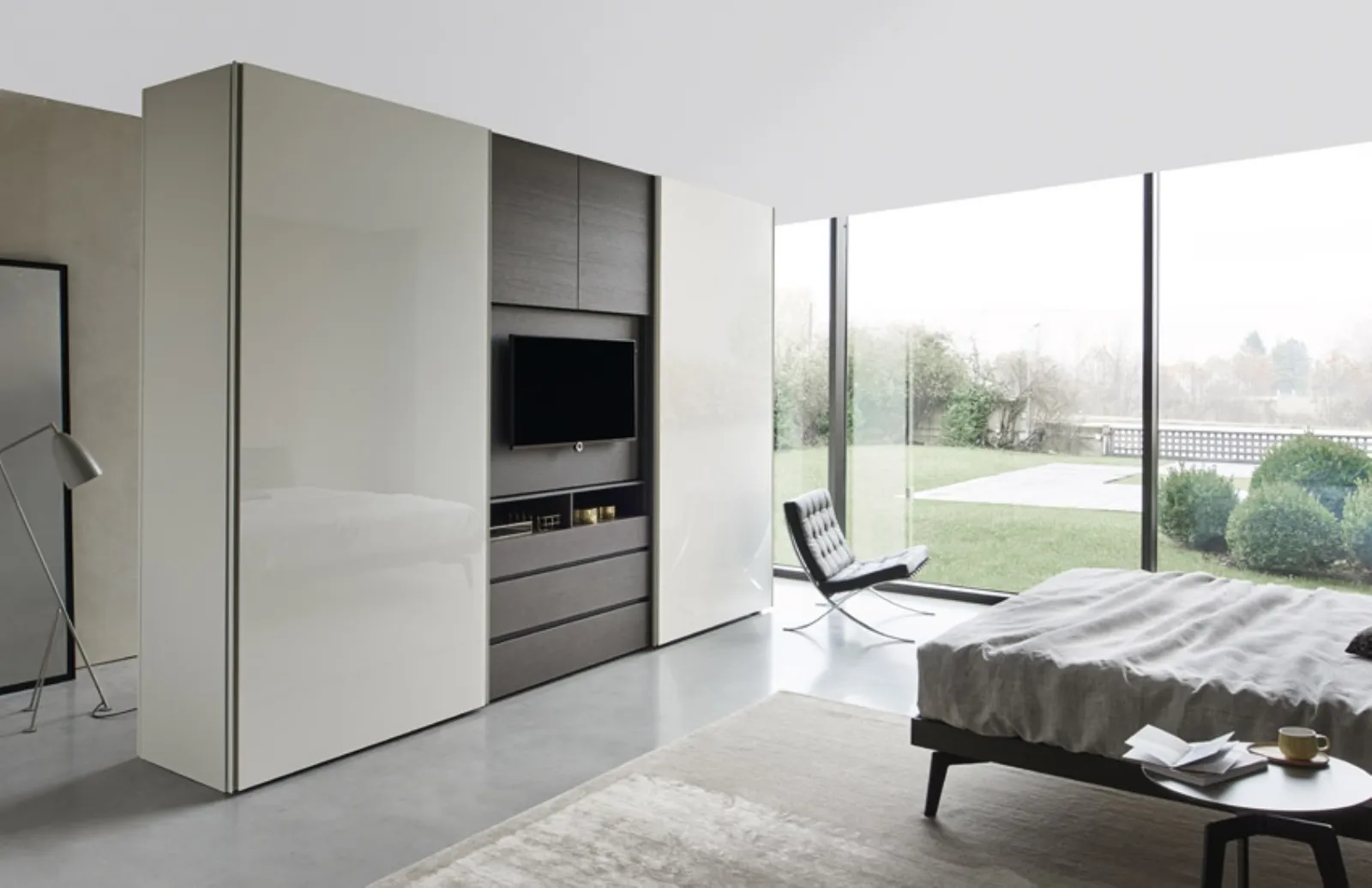 Armadio con ante scorrevoli per spazi moderni modello Odeon Laccato Lucido Scorrevole: scopri le soluzioni a muro per la zona notte