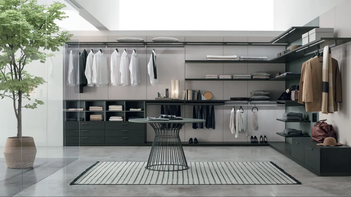 Modello Pratico con ante battenti in materico perfetto per una zona notte dai richiami moderni: scopri le soluzioni cabine armadio