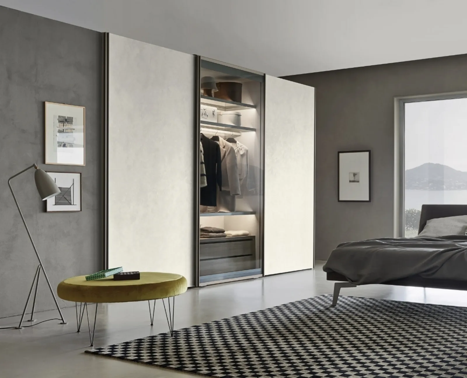 Per completare il progetto d'arredo in una camera da letto bella e funzionale, abbiamo scelto per te le più esclusive e accattivanti soluzioni Sangiacomo, diverse per eleganza, dimensione, finitura e elementi accessori. Contattaci e ottieni informazioni su una ricca gamma di Arredamento Casa per arredare la zona notte usufruendo di mobili contenitori in melaminico di alto contenuto estetico. Armadio scorrevole Scrigno Materico di Sangiacomo: compila il form per informazioni e preventivi e progetta la tua casa come l'hai sempre sognata. Nella nostra linea di Armadi a muro design con ante scorrevoli troverai anche il modello visibile in foto, ideale per chi cerca funzionalità e stile.