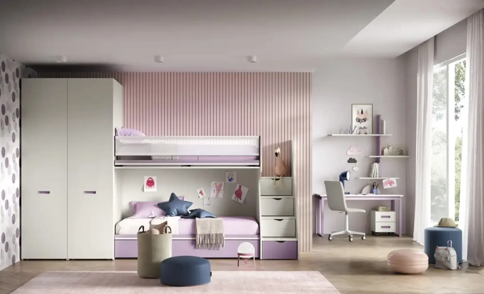 Per organizzare alla perfezione le Camerette, Moretti Compact Camerette presenta soluzioni progettuali e multifunzionali: sono svariate le attività che i tuoi figli portano a termine lì. Questa soluzione con finitura in melaminico, tra quelle a soppalco per bambine di Moretti Compact Camerette, soddisfa le richieste degli adulti e i gusti dei piccoli. Visitare il nostro negozio vuol dire visionare in prima persona tutte le più originali soluzioni per bambine a soppalco in melaminico che presentiamo in negozio. Con la Cameretta K103 di Moretti Compact Camerette renderai la stanza dei tuoi figli un interno davvero vivibile e sicuro, che li seguirà nella crescita.