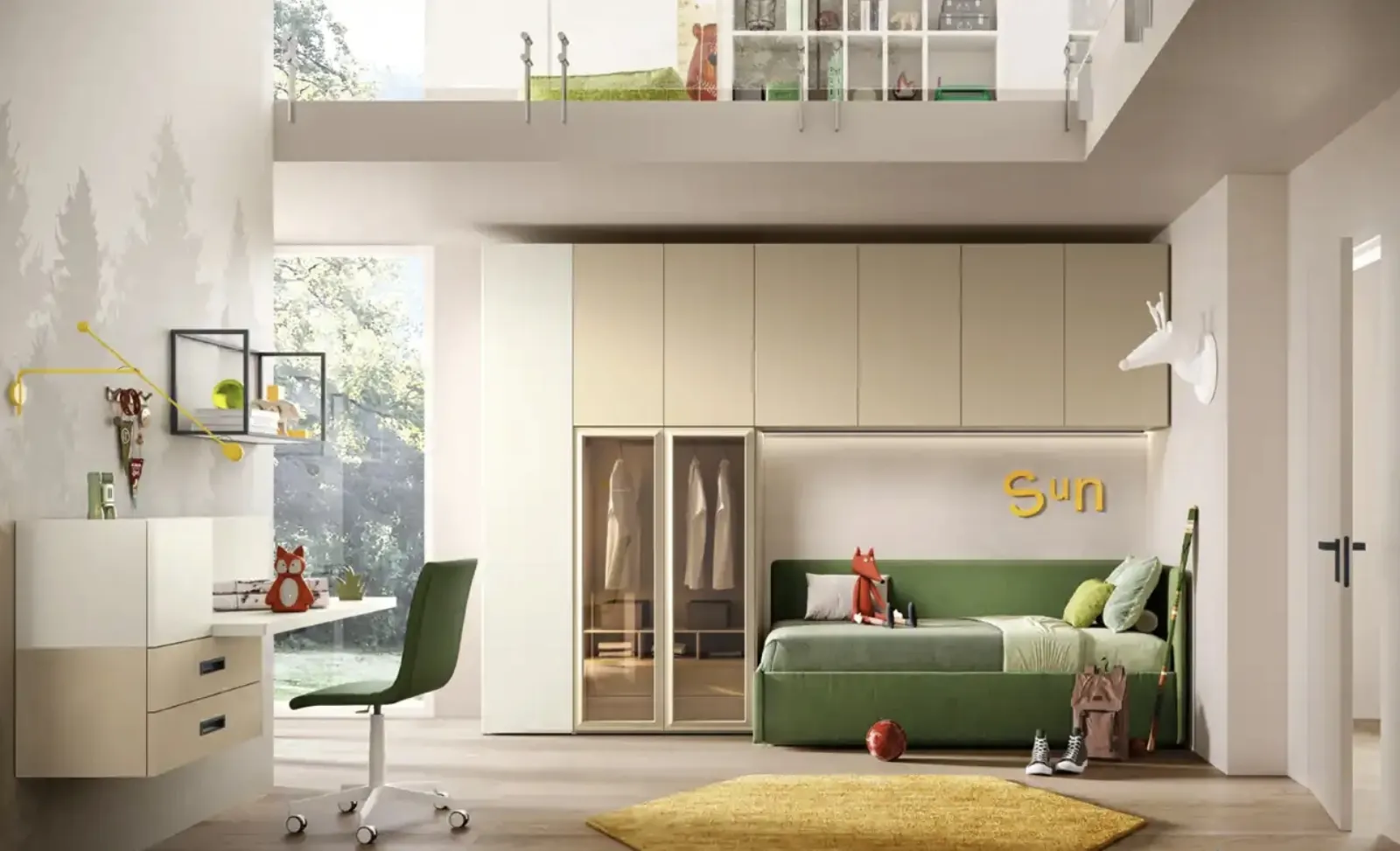 Moretti Compact Camerette mette a disposizione una ricca gamma di accessori da comporre su misura: troverai letto, armadio, scrivania, sedie e librerie. Nell'arredamento della stanza dei bambini affidati a noi: nel nostro showroom presentiamo tutte le più esclusive composizioni moderne per la loro camera. Se cerchi spunti creativi per organizzare ottimamente la stanza dei tuoi bambini, ti presentiamo la Cameretta K111 di Moretti Compact Camerette con finitura in melaminico. Questa proposta in melaminico ultima ottimamente le qualità pratiche e l'estetica della camaretta, in quanto è capace di congiungere ergonomia e sicurezza.