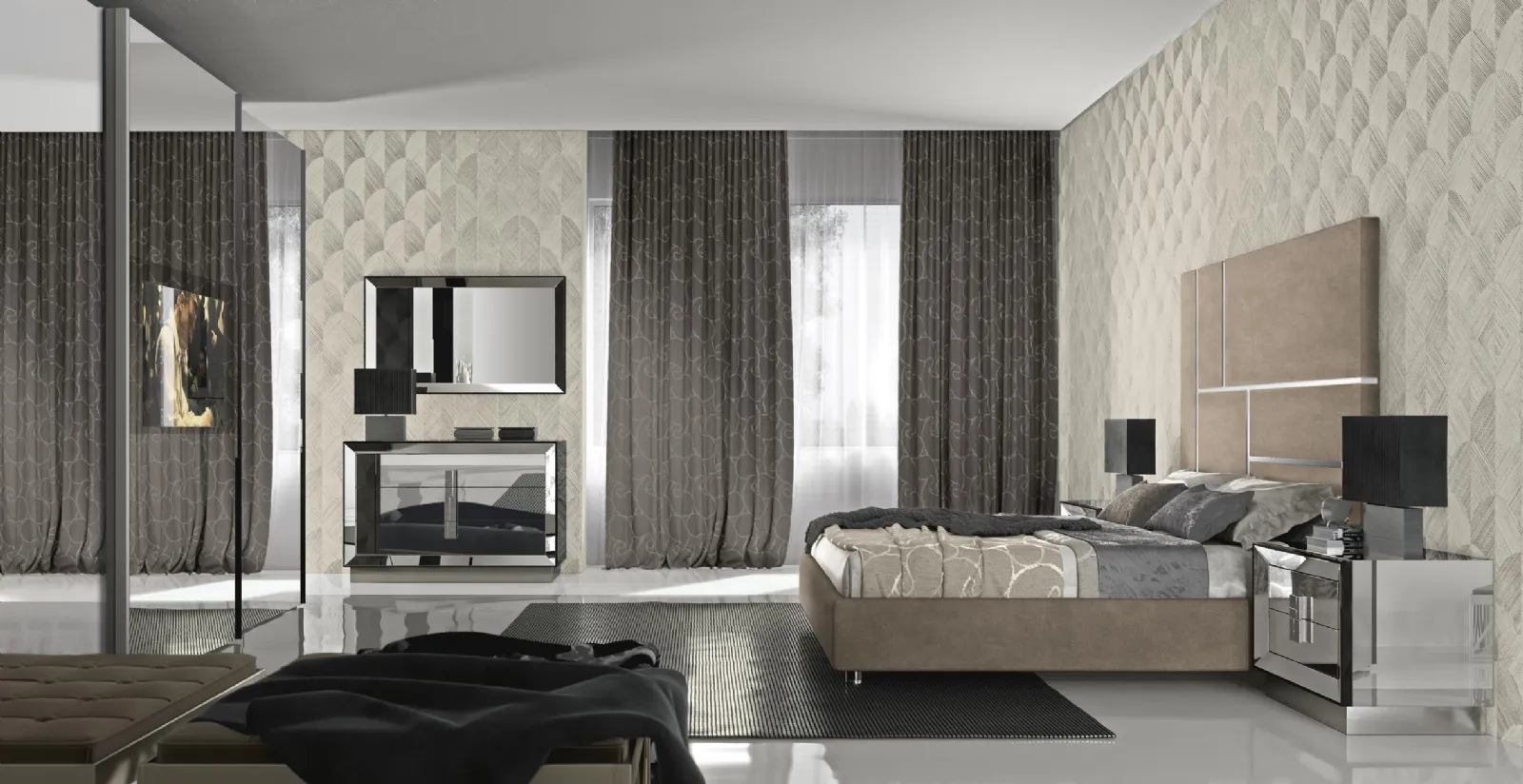 Durante la scelta della giusta tipologia di letto, valuta con attenzione le sue dimensioni, i materiali, la forma e il suo stile rispetto ai restanti pezzi d'arredo. I Letti matrimoniali imbottiti del brand, specialista nella realizzazione di Arredamento Casa per la zona del riposo, sono progettati per essere abbinati a mobili e complementi di ogni genere, come armadi e comò, lampade e piantane. Scegli cromie e finiture e realizza il tuo concept d’arredo nella camera, progettandola proprio come l'avevi immaginata. Se vuoi una soluzione in tessuto, il modello presente in foto è caratterizzato da materiali pregiati e forme decise, che invitano a goderti un sonno sereno e rigenerante.
