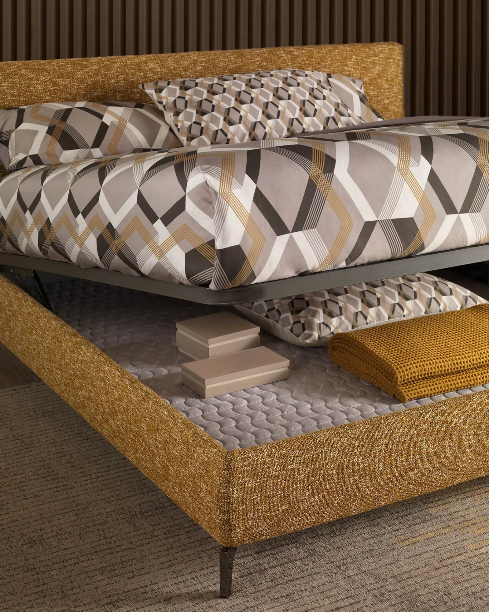 Scopri nel nostro punto vendita una ricca gamma di Letti con contenitore, mobili e complementi per la camera da letto dei migliori produttori. Se vuoi ricreare un'atmosfera intima e distensiva, il modello visibile in foto fa al caso tuo: nella stanza del relax dovrai ricreare un'atmosfera distensiva, per farti rigenerare le energie psichiche e fisiche ogni notte. Durevolezza dei materiali e grande comfort sono gli aspetti che connotano tutti i prodotti dell'azienda, tra cui anche il letto in tessuto nell'immagine. Se vuoi progettare spazi moderni, ti aspettiamo per presentarti la nostra profilo di Arredamento Casa per realizzare il tuo progetto su misura.