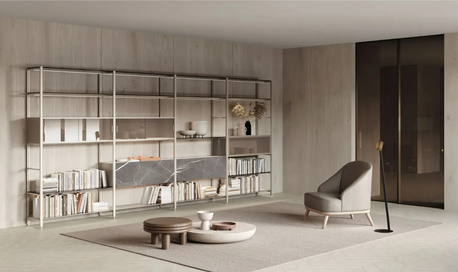 Se cerchi una libreria in metallo, che sia solida, funzionale, piacevole e raffinata, sbirciare le nostre soluzioni moderne ti aiuterà a trovare il modello che fa per te. Gli arredamenti per la zona giorno, come le Librerie a muro, permettono di mantenere lo spazio in ordine contenendo libri, giornali e oggettistica assortita. La Libreria Mida a muro di Doal qui presente ben si inserisce in uno spazio dinamico e operativo nonché di grande valore estetico. Organizzare il soggiorno è facile: scegli la migliore tipologia di libreria con cui arredare l'ambiente e enfatizzare l'atmosfera dello spazio. Organizzare al meglio il proprio soggiorno è possibile: contattaci per avere ulteriori info per il modello di libreria nella fotografia e ottimizza la tua casa con la qualità assicurata dal noto e conosciuto marchio.