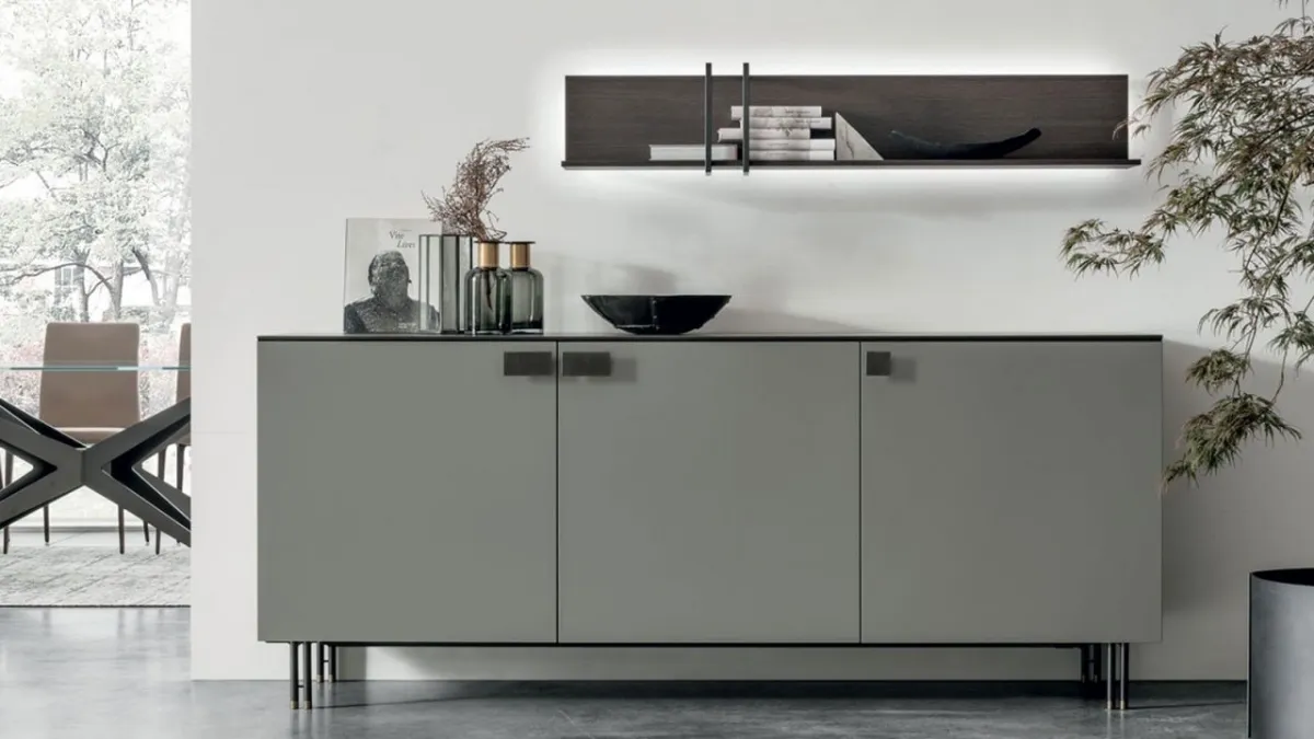 Mobile soggiorno dalle linee essenziali Basilea in laccato opaco ideale per impreziosire e organizzare al meglio stanze moderne