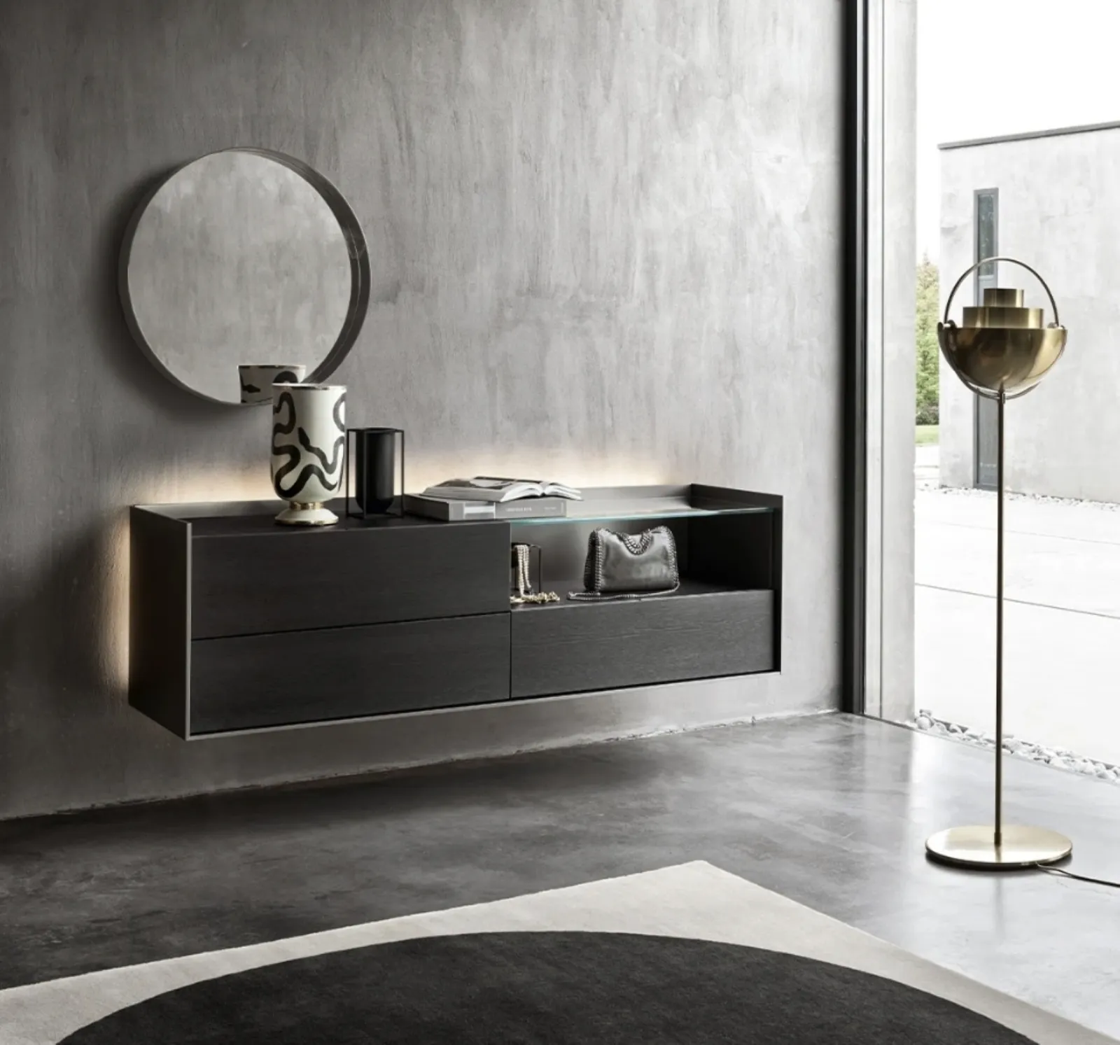Avere sempre a disposizione un piano d'appoggio multifunzionale nella zona giorno, per riporci la tua oggettistica e rendere i locali vivibili è fondamentale. Le doti contenitive di questi mobili moderni di Sangiacomo, come quello nell'immagine, ti garantiranno di avere sempre a disposizione lo spazio di cui hai necessità. Tieni presente che la zona giorno è l’area della tua casa dove spesse volte inviterai amici e parenti: lo spazio deve risultare agevole e bello a vedersi. Che tu desideri riporci oggetti d'uso quotidiano o decorativo, uno dei nostri prodotti moderni di alto valore estetico sarà la scelta ideale per te. In negozio potrai toccare con mano le più esclusive composizioni con Mobili sospesi in legno del brand per le pareti della tua casa.