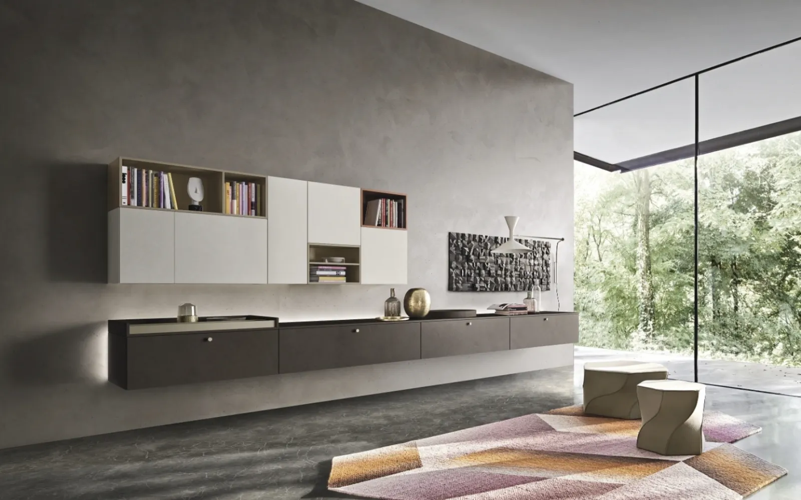 Un po’ librerie, un po’ mobili contenitori ed espositori: le Pareti Attrezzate sono ideali per arredare un luogo pratico e operativo. Questa soluzione costituisce tutta l'eccellenza che il brand assicura grazie a pluriennale professionalità e grande dedizione nel settore dell'arredo e del design. La Parete Attrezzata Lampo 005 di Sangiacomo nell'immagine, con finitura in melaminico, risolve le più personali esigenze abitative di stile e spazio senza rinunciare alla ricerca stilistica. Anche in un living di dimensioni contenute, questo tipo di arredo riesce a organizzare al meglio gli spazi valorizzando ogni angolo e garantendo componibilità su misura tipica delle soluzioni moderne.