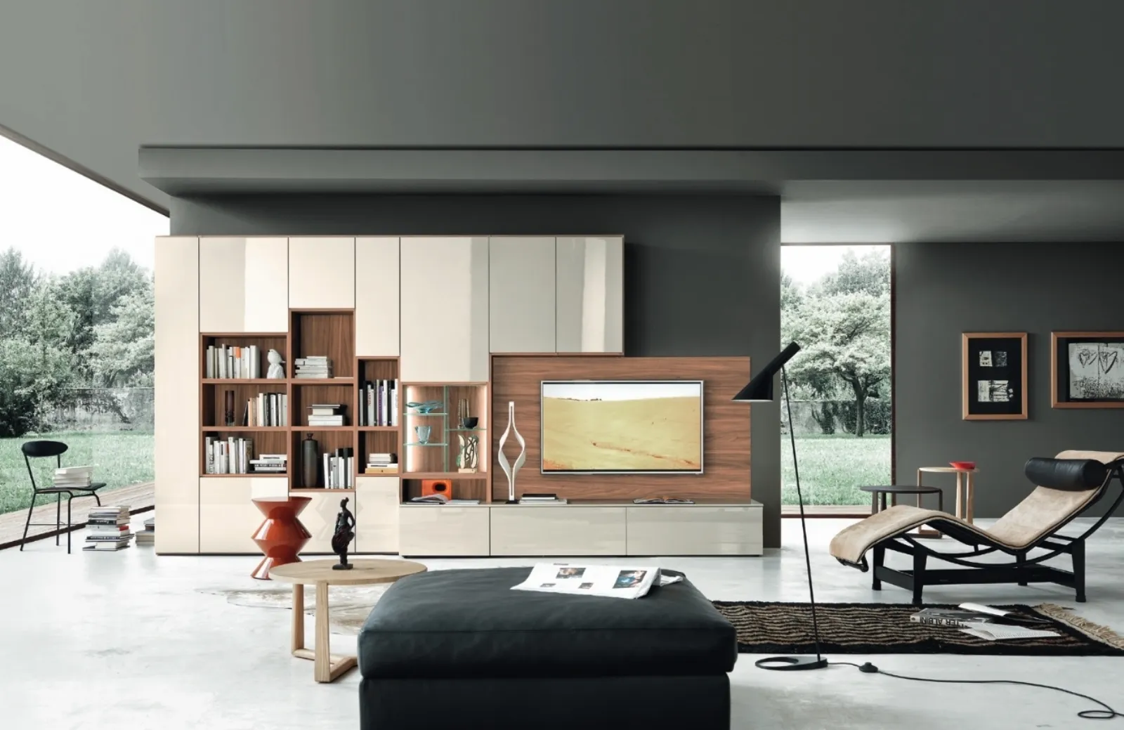 Parete attrezzata dalle linee moderne realizzata in laccato lucido: scopri il nostro Arredamento Casa Sangiacomo