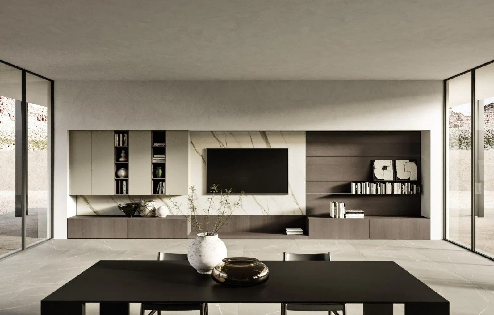 La Parete Attrezzata Modula Composizione 01 di Snaidero nella fotografia è una tra le più originali soluzioni d’arredo sul mercato: componibilità personalizzabile e le varie opportunità di progettazione la rendono bella e di grande qualità. I mobili soggiorno in laminato dalle linee moderne come il modello nella fotografia sono veramente versatili e capaci di ammobiliare il soggiorno ottimizzando ogni angolo. Poiché il soggiorno deve essere uno spazio agevole e bello da vedere, sono molto utili alcuni mobili belli e pratici come le Pareti Attrezzate. Lasciati stuzzicare da una ricca gamma di mobili per la zona giorno e troverai la parete attrezzata che fa per te.