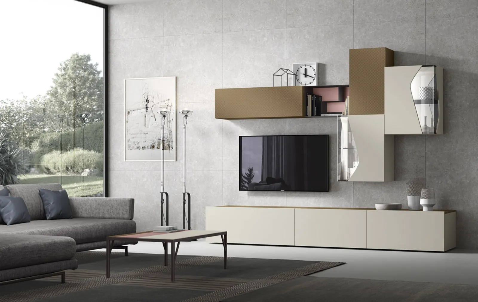 Mobili per il soggiorno e Pareti Attrezzate moderne Corso 11: scopri il modello Soggiorno G307 in laccato opaco mostrato in foto