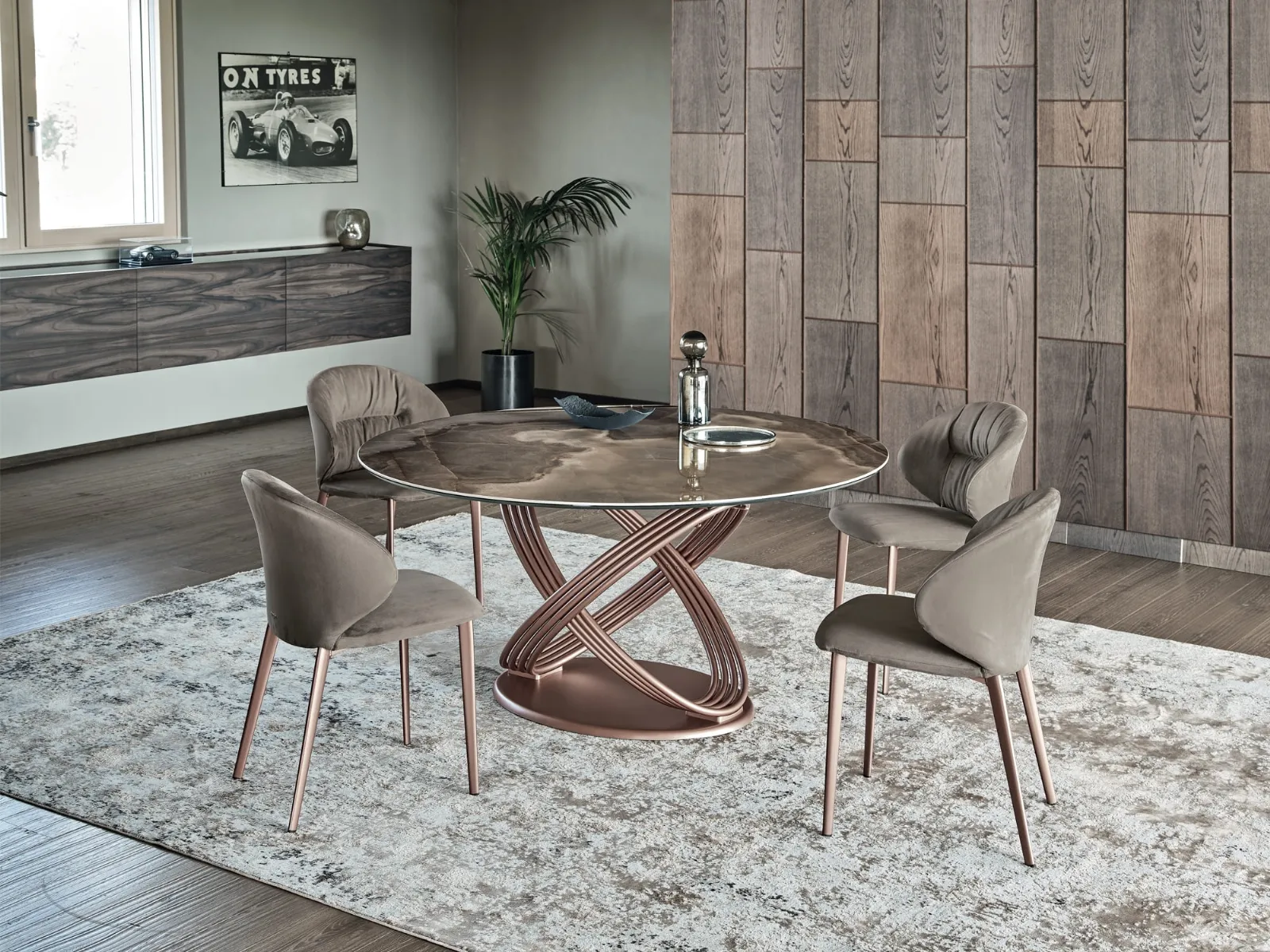 Ideali per dare vita a degli accostamenti unici con sedie e complementi design, i Tavoli fissi dell'azienda sono soluzioni tra le più originali in commercio, ideali per il soggiorno e la zona cucina. Se vuoi un tavolo da pranzo di grande design, contattaci e ricevi informazioni e preventivi sul modello presente in foto. Il noto e conosciuto marchio Bontempi, specialista nella produzione di arredi in gres, ha scelto per la sua serie una grande varietà di materiali, linee e tonalità. Un modello come quello nell'immagine, in abbinamento alle giuste sedie, saprà completare il look delle stanze domestiche dedicate per eccellenza alla convivialità.