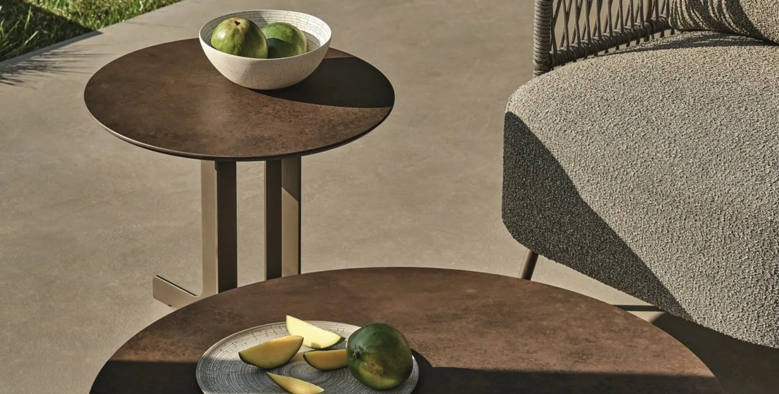Scopri i nostri mobili e tavolini da giardino: il modello Tavolino Nell in gres presente in foto ti aspetta